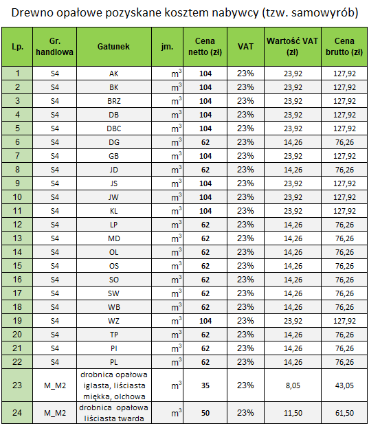 Zasady sprzedaży detalicznej drewna dla osób fizycznych oraz przedsiębiorców nie prowadzących działalności gospodarczej w zakresie przerobu drewna określone są w Zarządzeniu Nadleśniczego.
